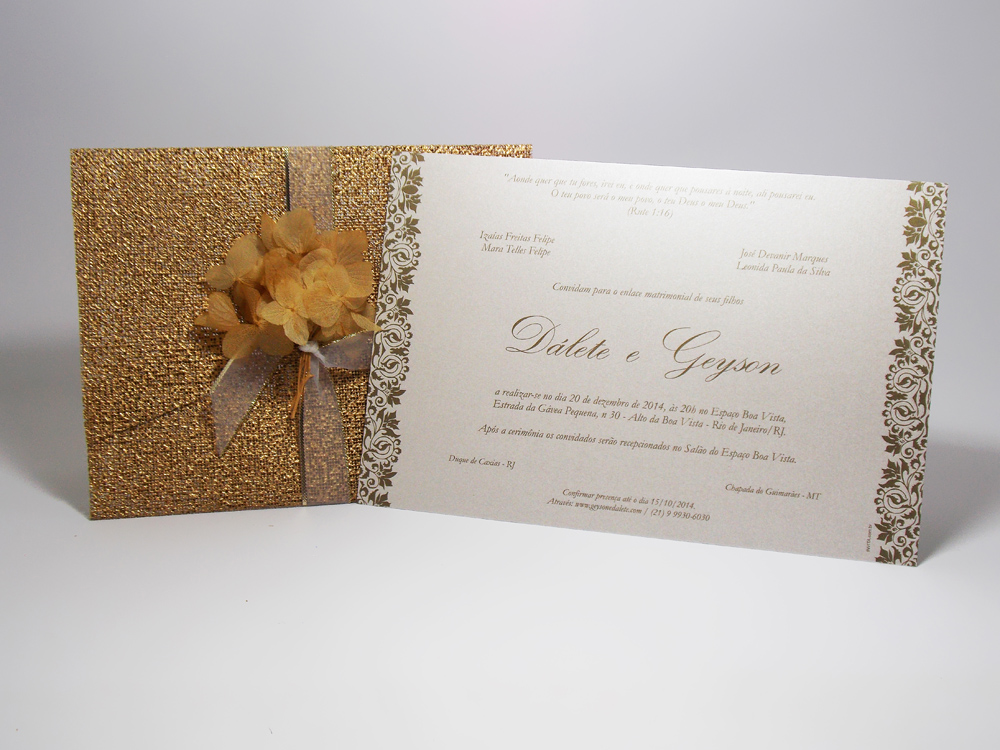 CONVITE DE CASAMENTO DOURADO RÚSTICO CHIQUE